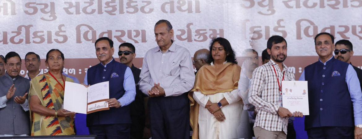 Gujarat Chief Minister Vijay Rupani issued approval letters and property cards regularizing proposed societies at a function organized by Ahmedabad District Revenue Administration at the Chandraprasad Desai Hall at Bapunagar here today.